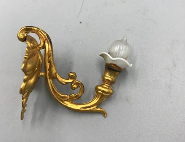 This ormolu sconce is hung on the wall and the bulb should be facing down. It measures: 2-1/4" long. Circa: 19th Century Price: $125