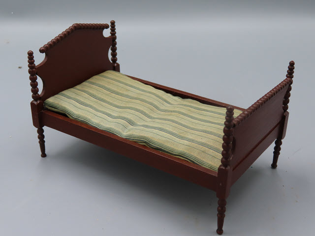 Measurements: The bed is 3-3/4" at the headboard, is 6-1/2" long and 4"w.