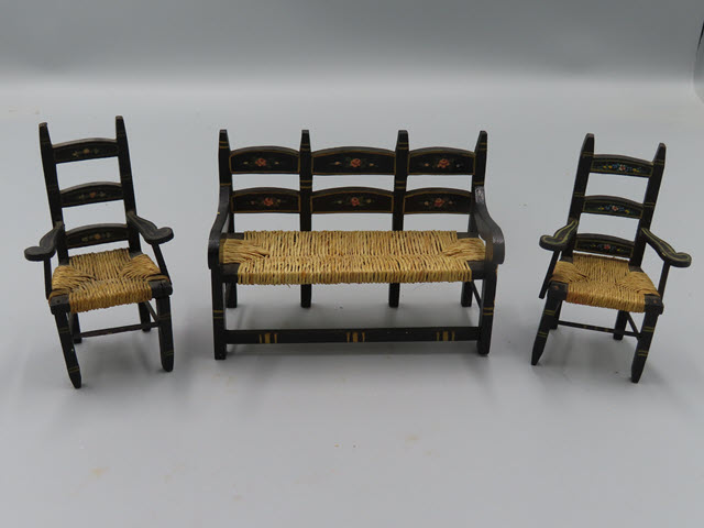 A Rush Seat Settee and Chairs by Tynietoy