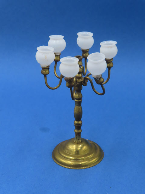 The lamp is made of brass and has six globes that are inserted on top. A great piece for a formal living room!