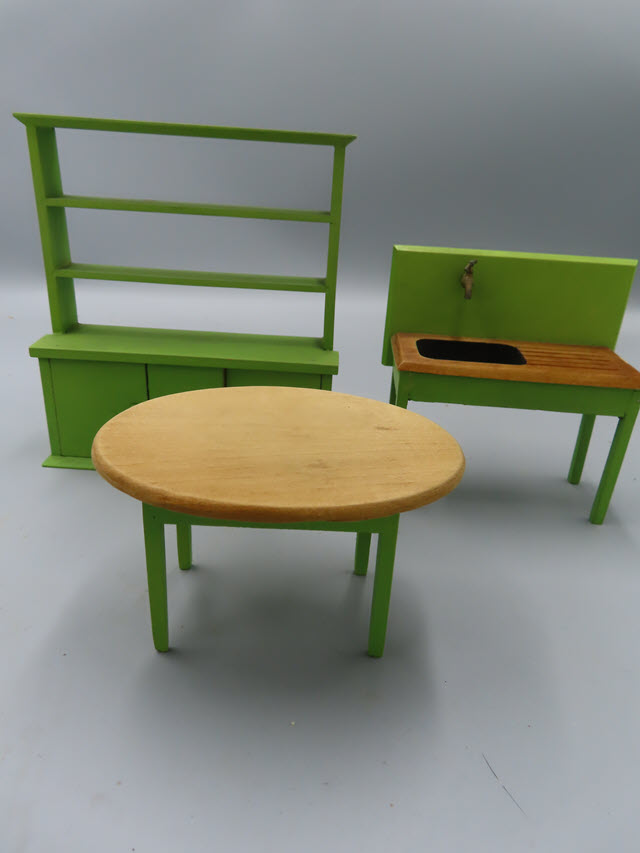 This Tynietoy Kitchen Furniture set includes a sink, cupboard and table. The