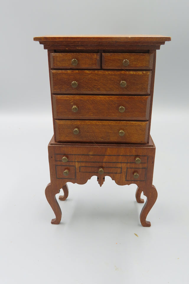 Measurements: 6-1/4" tall x 3-1/2" at the top of the highboy.