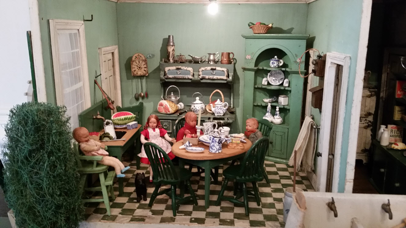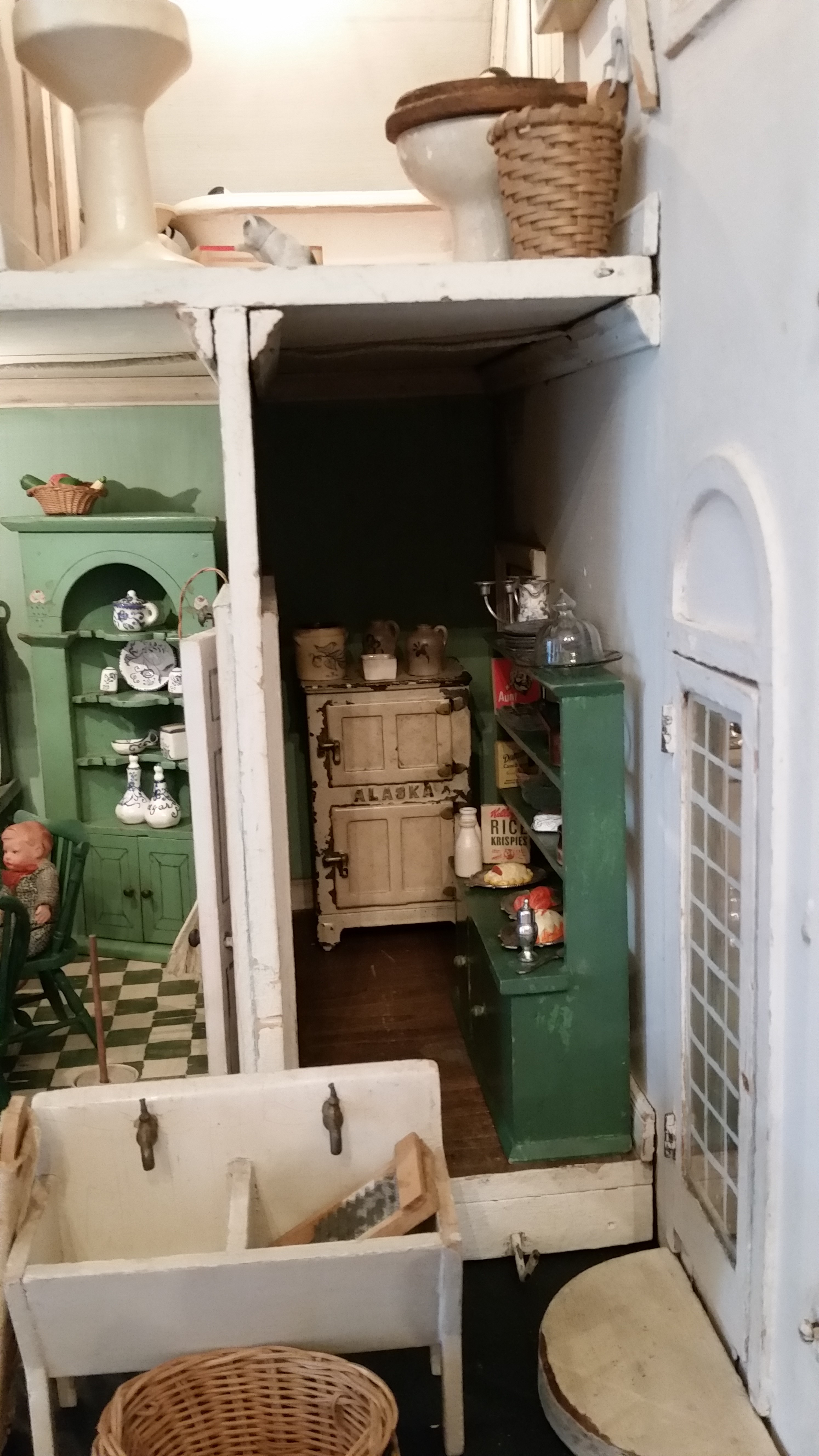 the natural wood as opposed to being painted. When the front is removed we will see the rooms displayed with many pieces of the Tynietoy furnishings.