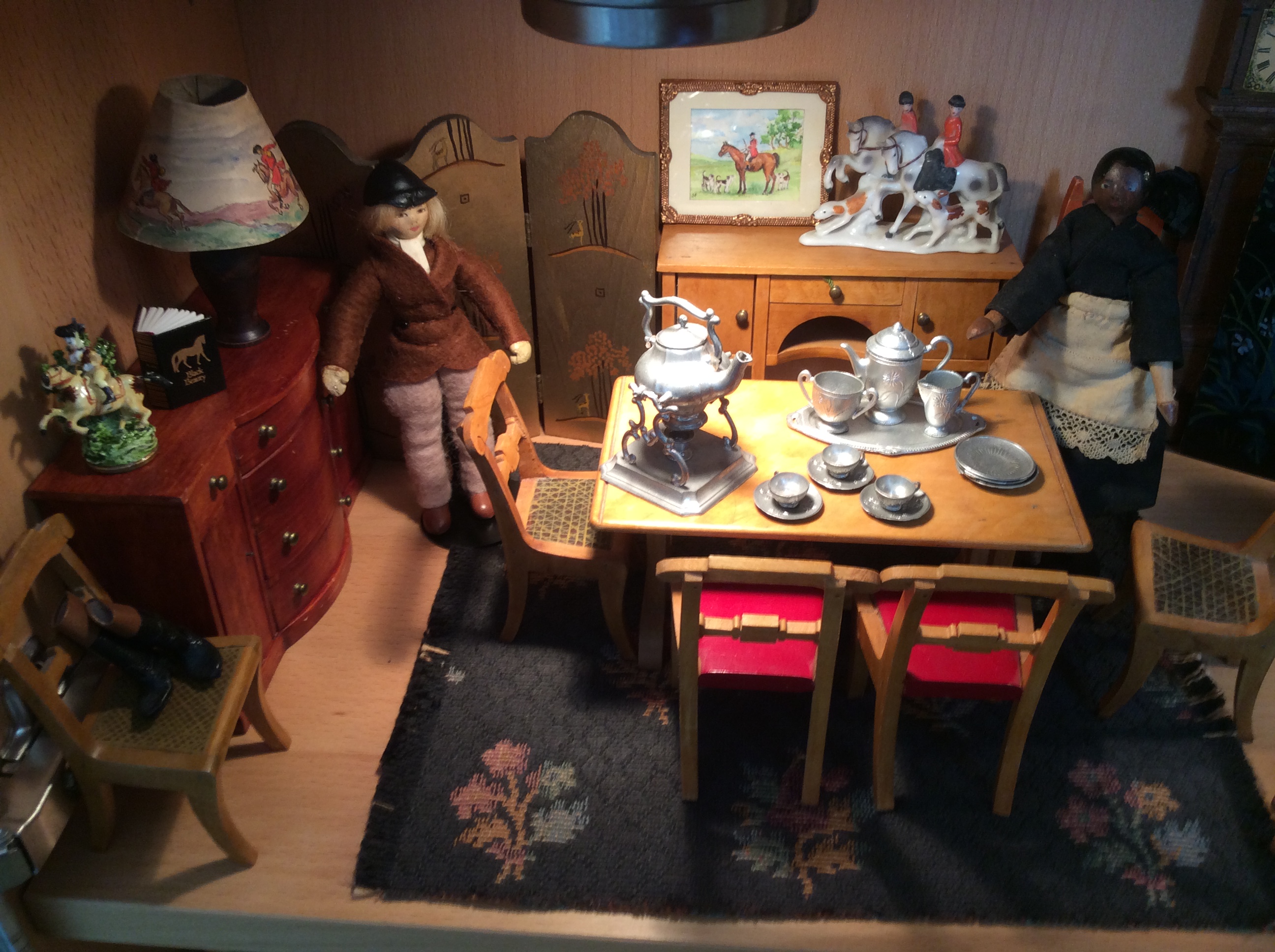 Another collector has sent us a scene entitled “The Hunt Breakfast” with all Tynietoy furnishings.