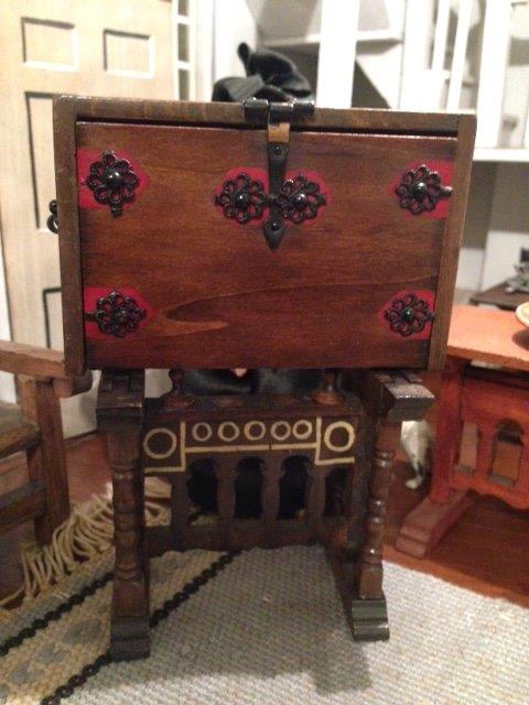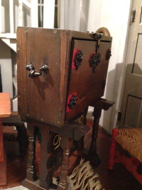 We will show a future Spanish desk where the drawers open! When the desk is closed, one can see the decorations with red paint under them.
