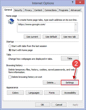 2. Under Browsing History - click on Settings.