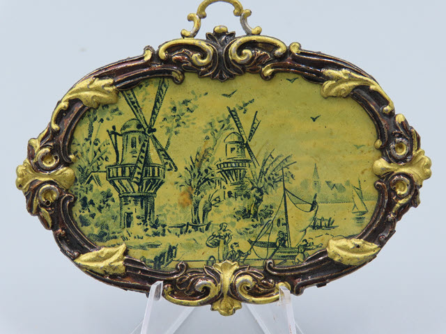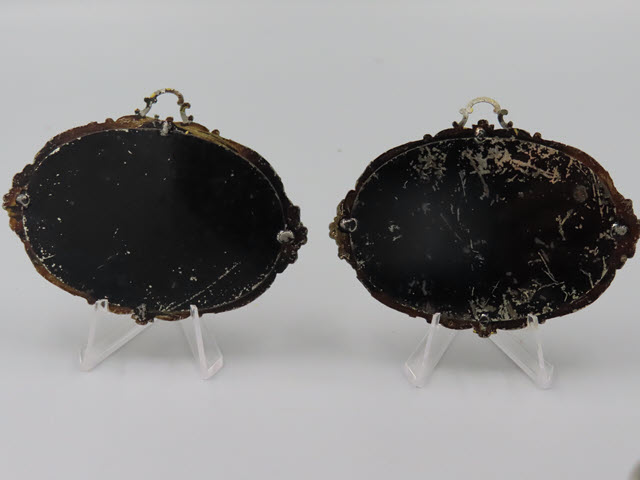 gold. The oval paintings also have a hanger at the top. The back side of the
