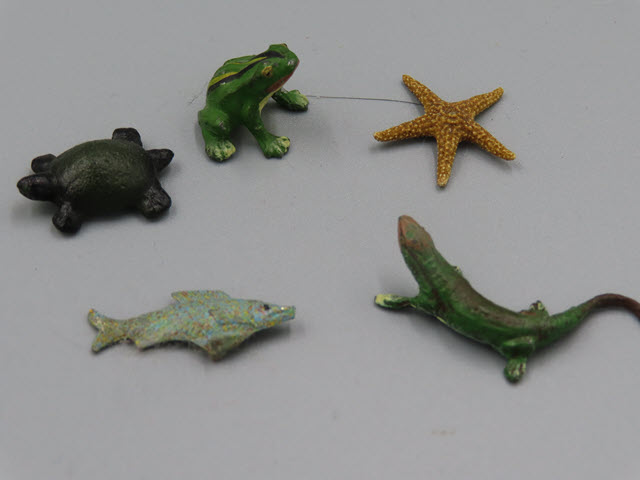 star fish, a great frog, a reptile and a turtle. They all seem to be made from a
