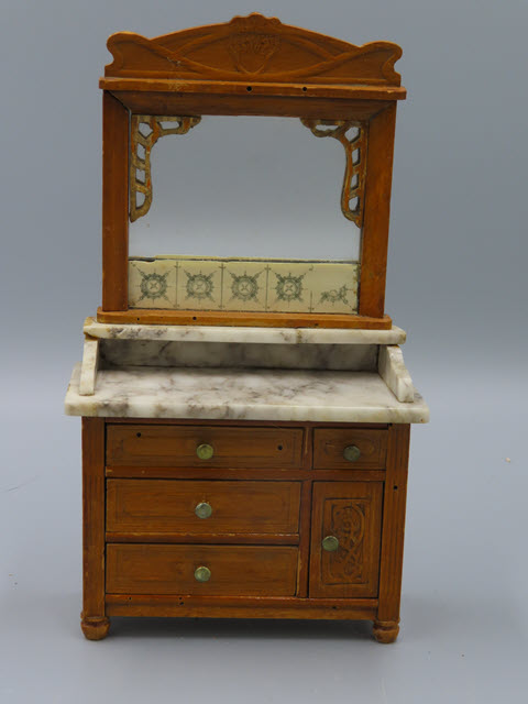 below. It has a marble top with a marble shelf on top which holds the fancy