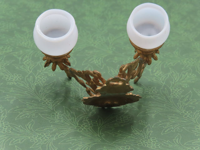 The double sconce is made of metal with a gold surface. The branches holding