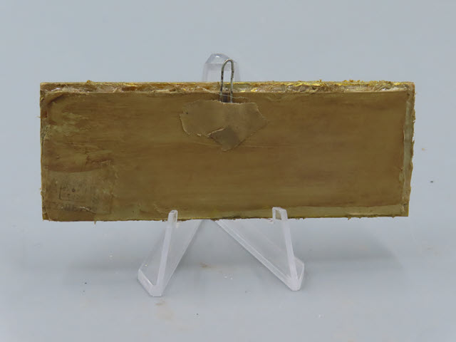 A Three Part Tynietoy Mirror The wooden framed mirror has painted parts in gold with black outlining. There is a hook on top of the mirror for hanging. Measurements: 1-1/2"h. x 4"w. Circa: 1920's Price: $50