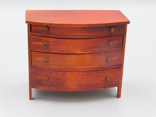 This bow front chest has a beautiful mahogany finish. (It looks more red in the