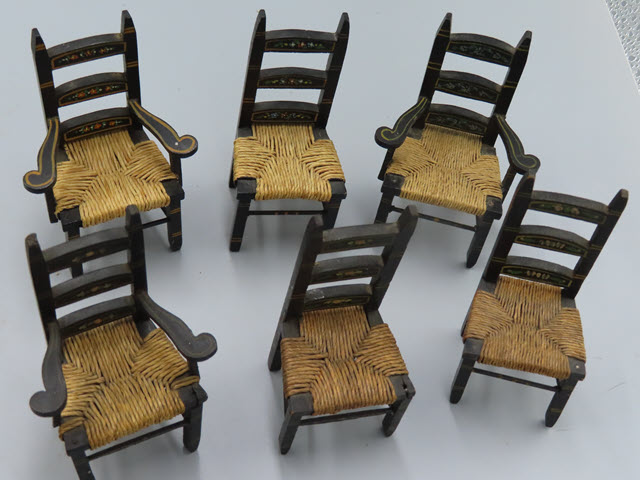 The rush seats on all the furniture is in fine condition. The slats on the back