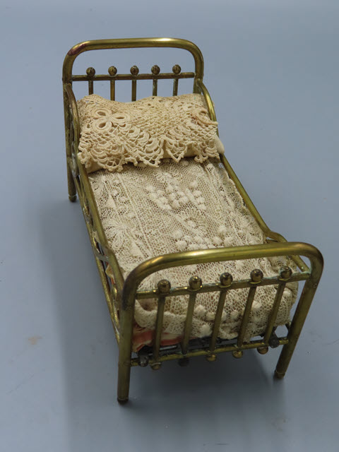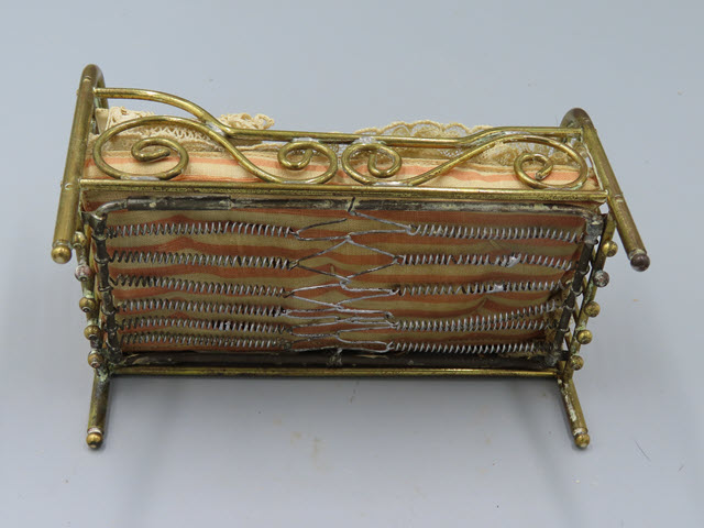 Marklin Bed The bed has scroll work on both sides and has springs underneath the bed! It measures: 3-3/4"h. x 6"long x 3"w. Circa: 1890-1910 Price: $175