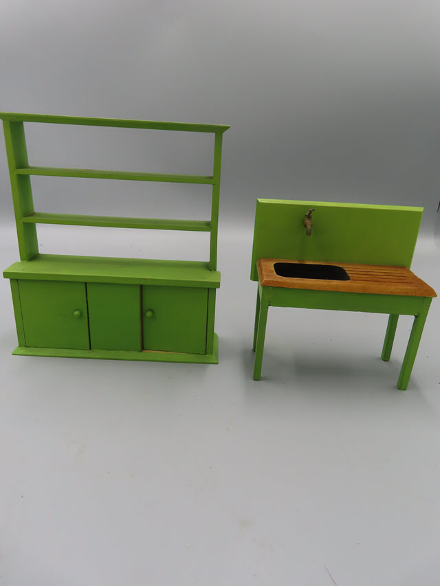 This Tynietoy Kitchen Furniture set includes a sink, cupboard and table. The