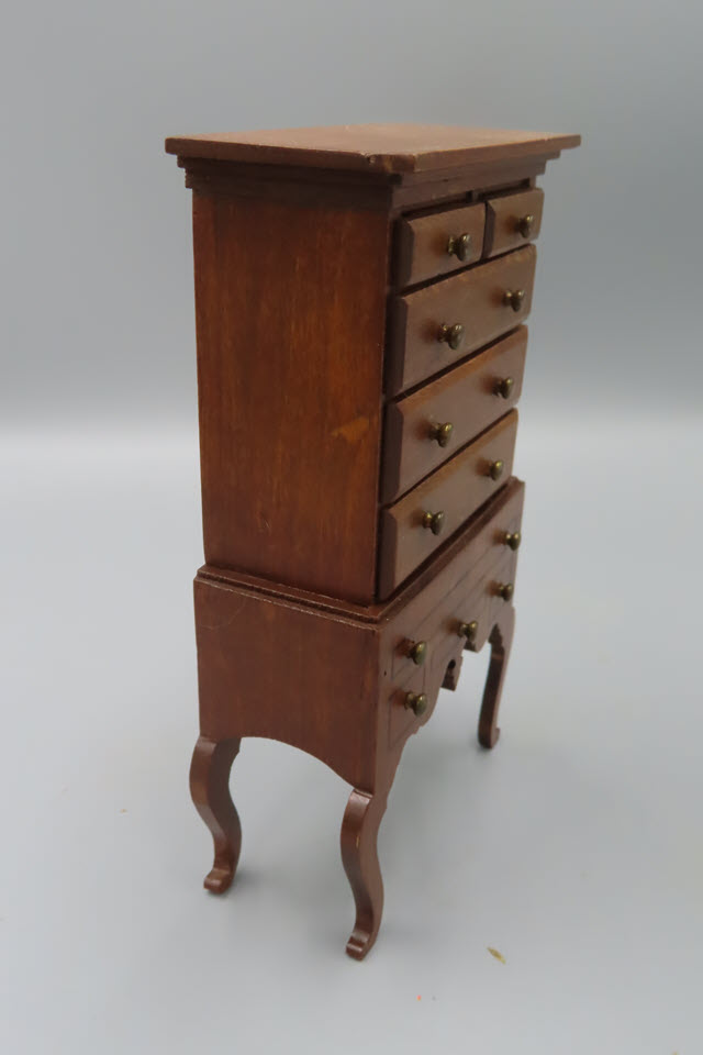 Measurements: 6-1/4" tall x 3-1/2" at the top of the highboy.