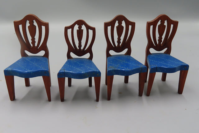 There are four chairs that match. These chairs could be placed around tables in a parlor or at a dining room table! Excellent condition. Measurements: 3-1/2"h. Circa: 1920's Price: Each chair is $40.