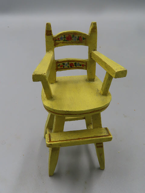 High Chair This cute high chair has some pretty painted details on the seat back.