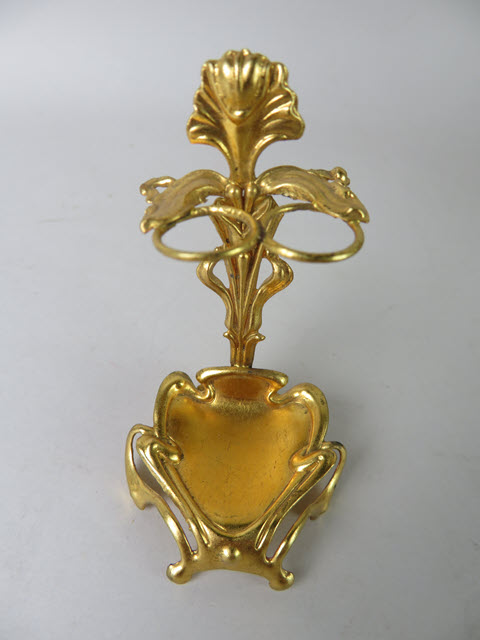 You can see the "Lily" made as the standing post on the back which is a typical design for Art Nouveau work. Circular holders are attached to the lily to hold the umbrellas. The base is lavish with strong wedge designs to hold the tips of the umbrellas.